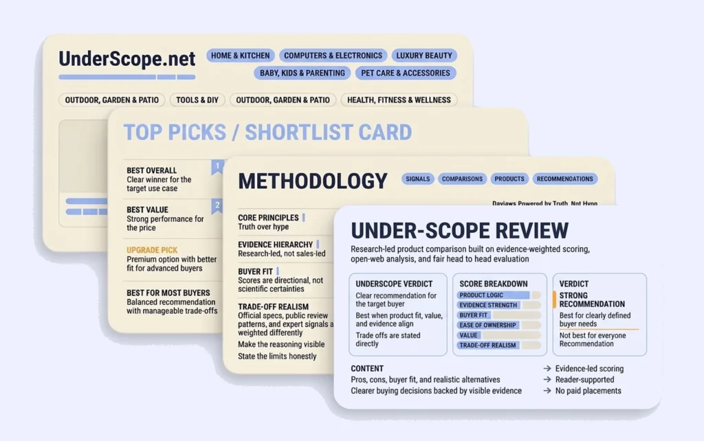 The internet made shopping louder, not clearer. UnderScope exists to cut through recycled recommendations, hype, and vague praise with research-led reviews, sharper comparisons, and honest verdicts. We focus on what actually matters: what stands out,